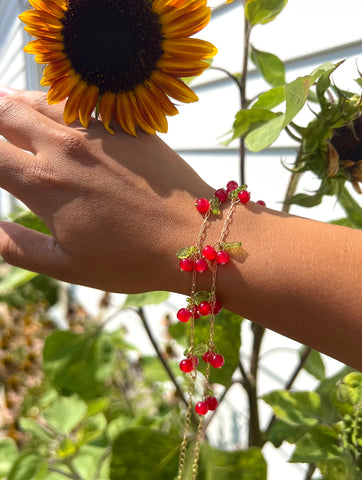 Glass Red beads, Glass Green Leafs đÂ